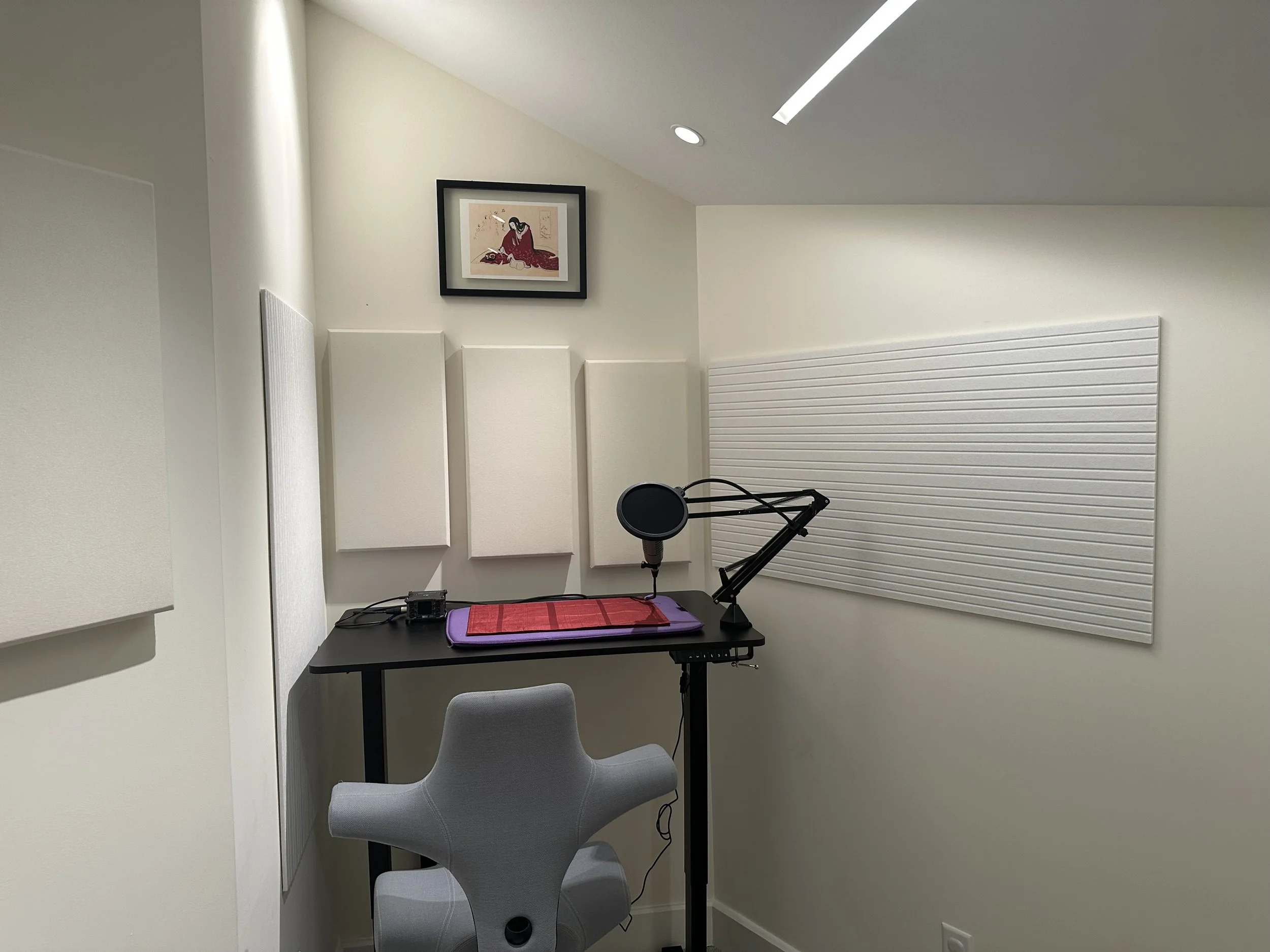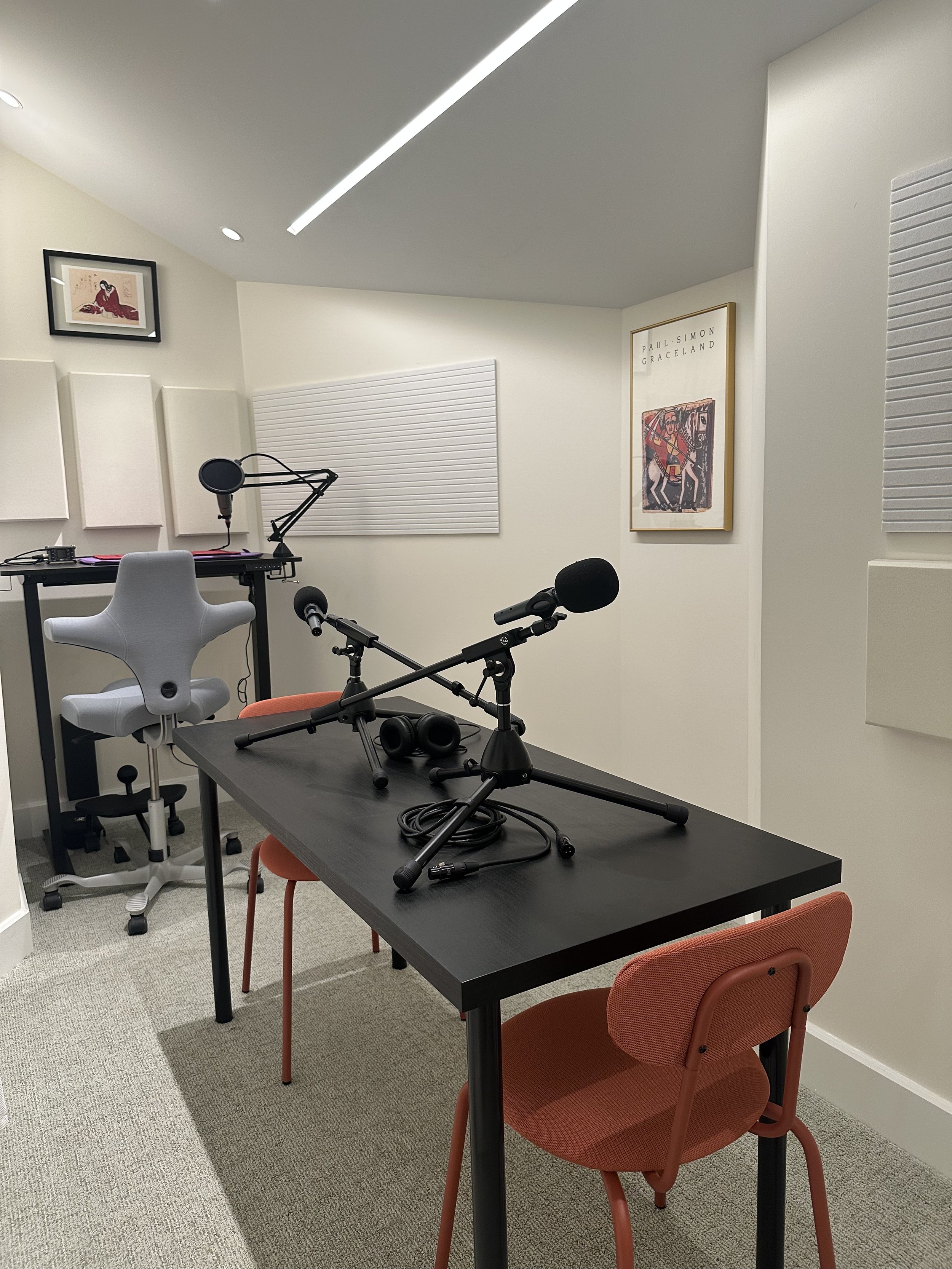 While the studio is primarily set up for podcasting, broadcasting, and audiobook narration, it is also suitable for small bands and solo artists.